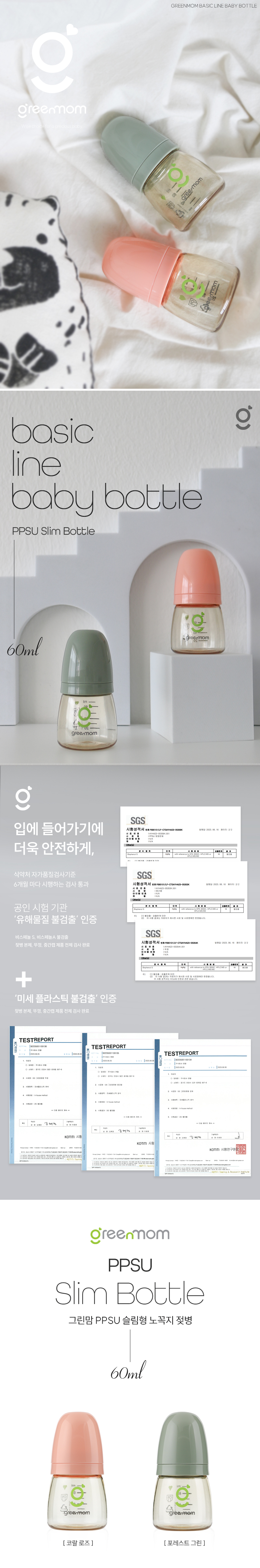 그린맘 베이직 PPSU 슬림 노꼭지 젖병 60ml