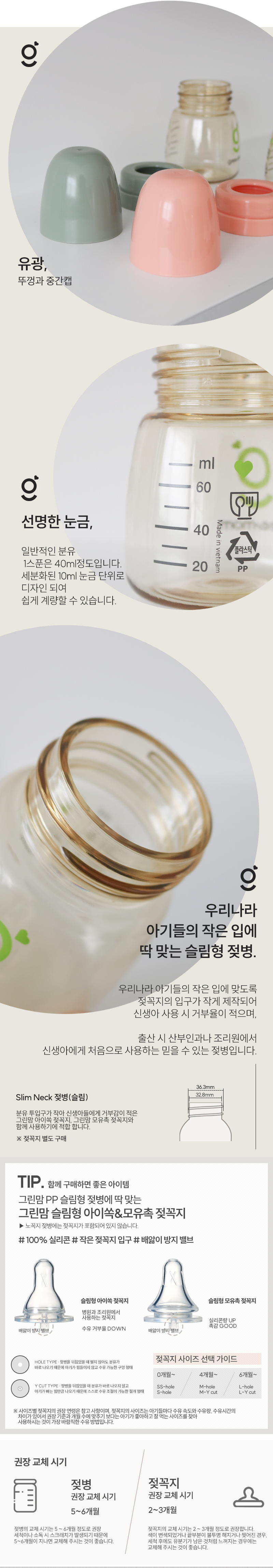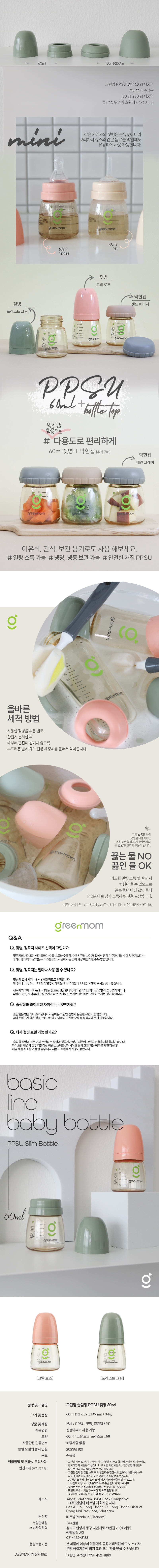 • 그린맘 베이직 PPSU 슬림 노꼭지 젖병 60ml