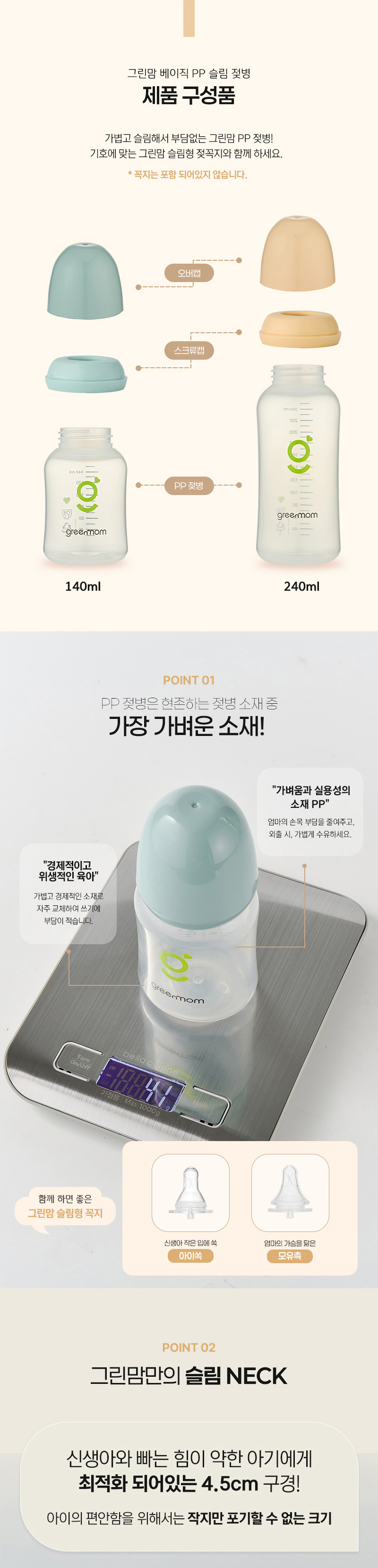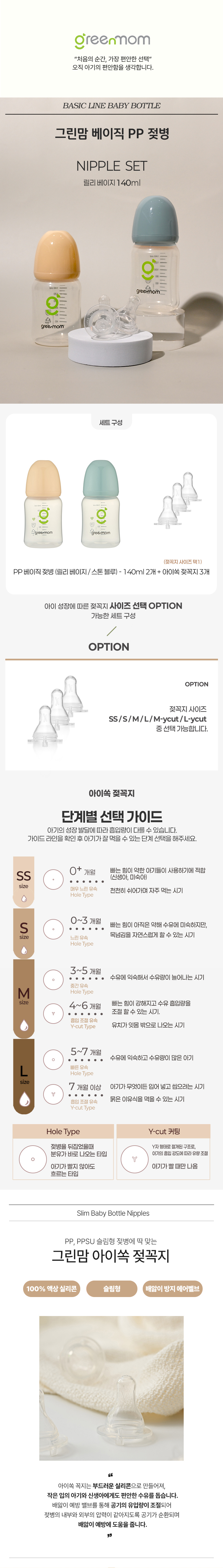 이미지 확대보기[슬림형세트] PP 베이직 젖병140ml2개 아이쏙3개