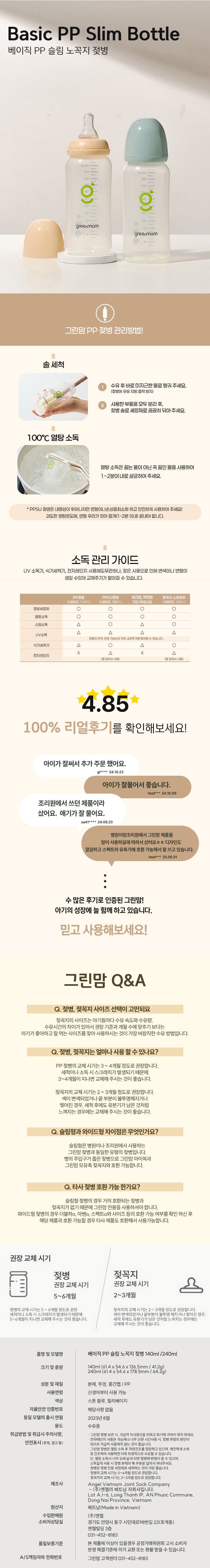 - 상품의 부자재 (젖병 인쇄 디자인, 스크류캡(중간캡), 막힌캡, 뚜껑색상, 포장케이스) 등은 회사 사정에 따라 변경 될 수 있으므료, 제품 불량으로 인정되지 않습니다.