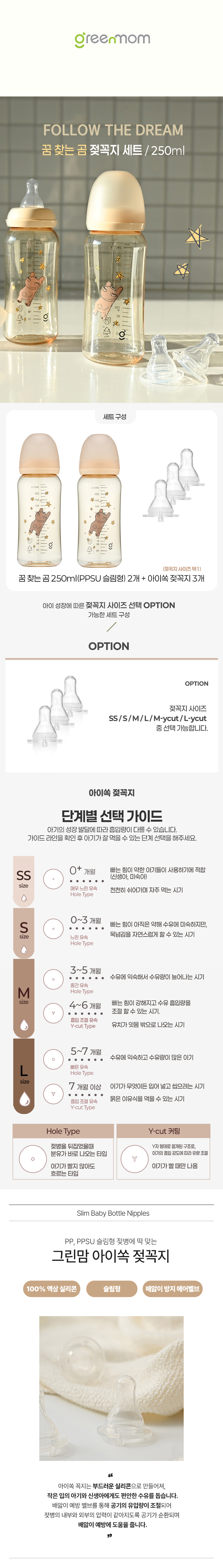 • [젖꼭지 세트] PPSU 꿈찾는 곰 젖병250ml2개 아이쏙3개