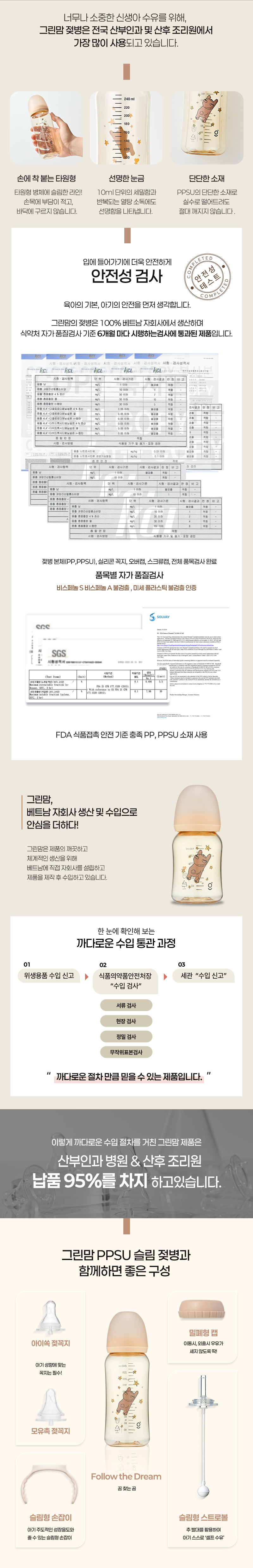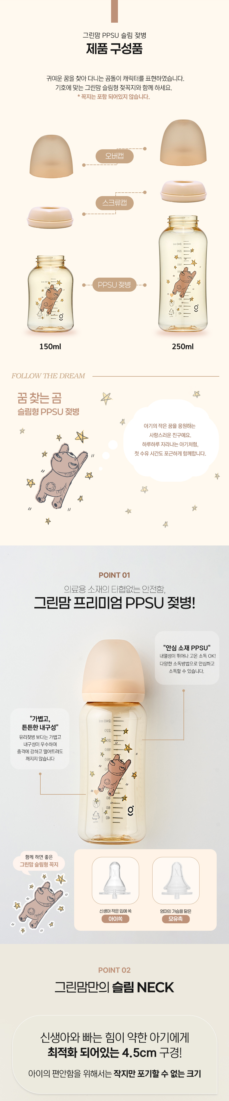 이미지 확대보기[젖꼭지 세트] PPSU 꿈찾는 곰 젖병250ml2개 아이쏙3개