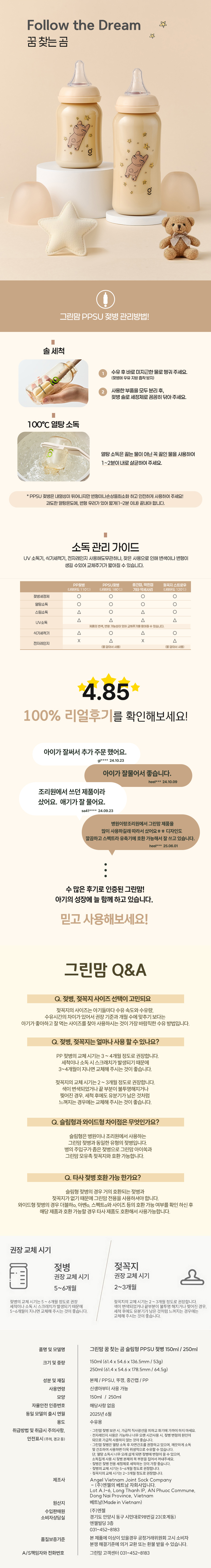 - 상품의 부자재 (젖병 인쇄 디자인, 스크류캡(중간캡), 막힌캡, 뚜껑색상, 포장케이스) 등은 회사 사정에 따라 변경 될 수 있으므료, 제품 불량으로 인정되지 않습니다.